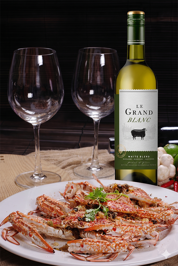 Rượu vang trắng Le Grand Noir Le Tricolore Marsanne – Grenache Blanc rất linh hoạt khi kết hợp ẩm thực, đặc biệt phù hợp với các món nhẹ và tươi mát.